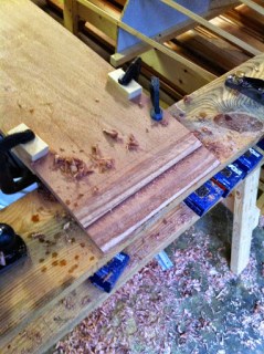 I regret I didn’t take more photos, but I was wrapped up in the process. I’ll take more detail pics in subsequent planks. Here are the planks resting on the moulds.