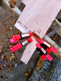 - I used a small nail through the panels to prevent epoxy slide in the joint. Small wedges under the clamped joint batten help snug it all down uniformly.