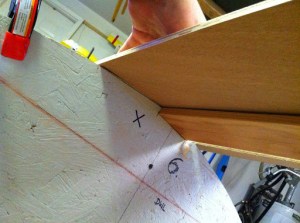 - Since I let the bow end run wild for final shaping, I was not convinced I had enough panel once joined so I added 8″ from what was to be cut off at the stern end.