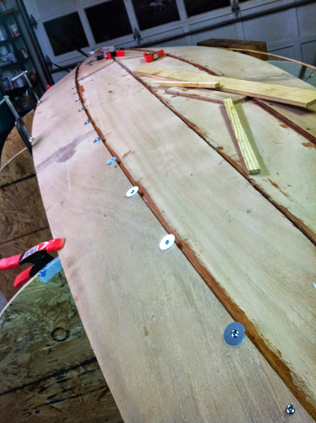 The good news is that we are done with 1/3 of the planking. Four planks on and 8 to go. She’s taking shape and, aside from self inflicted wounds, the technique is evolving.