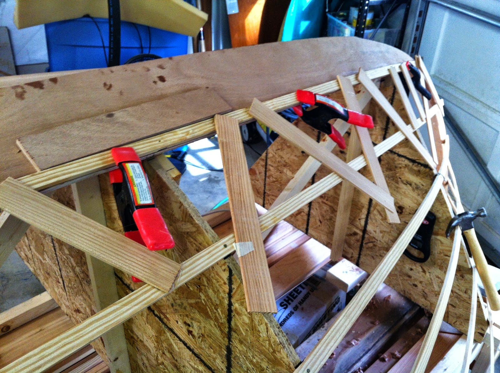 The trussed templates continue to be accurate. After cutting the 2 opposite planks together I set template again on the planks to confirm shape and either sand or plane the edges true to the template as a last check. No adjustments have been necessary on the moulds so far.