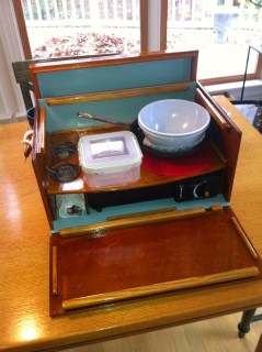 The last boat camp trip may have spoiled us. Meals cooked at camp on our small butane stove top opened up a whole new menu. Though the gimballed cup stove still has a place under way, taking every meal in a 20 oz cup might get old fast. Chris Cunningham at Small Boats Monthly had a box for his galley kit. John Hartman on WFB had his boxes. So, after studying those and many camp cook boxes out there I decided to design my own.