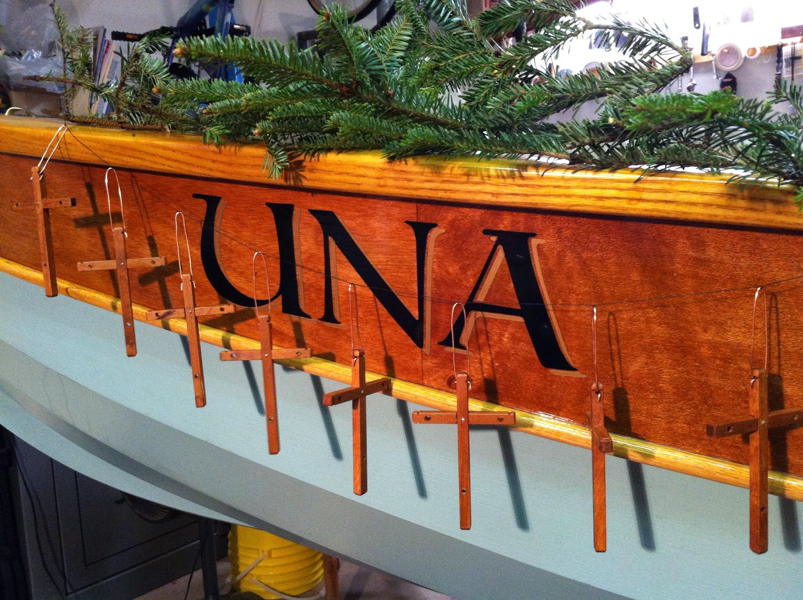 On a whim, we got into full “elf” mode for a spell yesterday, and crafted a dozen of these little ornaments from UNA’s cut offs. Like most things, it seemed to take twice as long as expected. However, it was nice to contemplate the season while traditional carols played in the background. Like boat building, the activity allowed for reflection. We’ve been blessed in so many ways and pray for the humility to realize it. Merry Christmas!