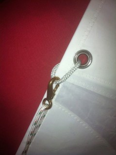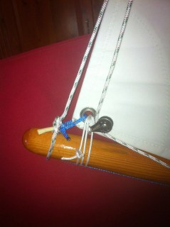 UNA’s winter “To Do List” is actually shrinking. Most of the tasks have been subtle refinements like loops for the reefing crinkles along with rings and snap hooks for easier use of that gear. The previously used cunningham hooks dropped out repeatedly when reef lines weren’t tensioned. Flailing hooks while raising or lowering the sail are never good. Scratch that off the List.