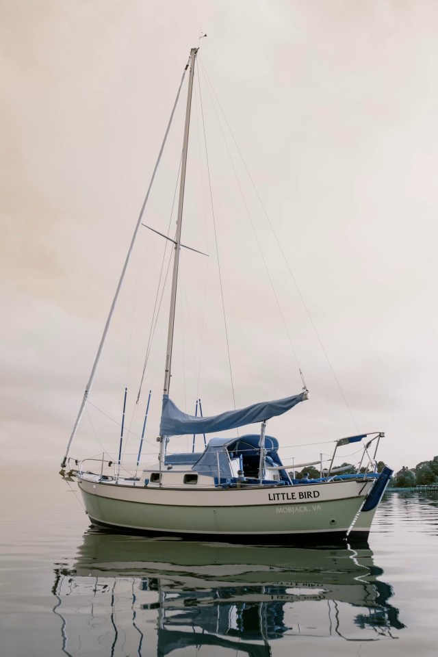 Temps lately have been close to historic lows here for July/August. Sailing? You had to ask? Took Little Bird for a short lazy downwind afternoon trip across Mobjack to Browns Bay for the evening. Swimming, cocktails and hors d’oeuvres met the sunset. later reading under the forward hatch below was short lived. I did catch the full moon. Amazing, but not photographable via phone. The big bright dish got reduced to a small white dot set in the midnight sky. Still, believe it or not, I saw it. Luminous and beautiful throughout the night, a gentle breeze and 65 degrees made for an easy slumber.