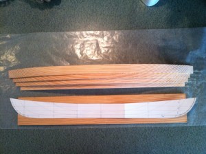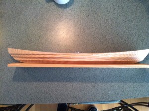 Note if your model is to be 24″ long, make sure the wood or lifts are not 22″! Yeah, now I’ve wood for a second half hull. Dumb. Consider it material for a future opportunity. That, and heed the “measure twice” adage. I won’t get into the “how to’s” of this form of model building. I’ve proven I may not be reliable there. Many sources are available. Anyway, here are some progress shots of the Greenbriar half hull.