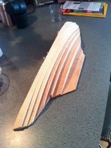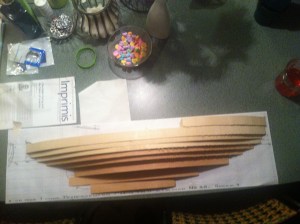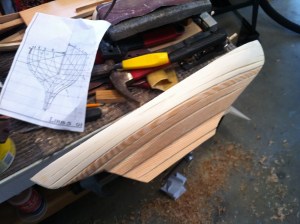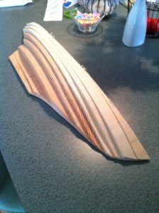 Note if your model is to be 24″ long, make sure the wood or lifts are not 22″! Yeah, now I’ve wood for a second half hull. Dumb. Consider it material for a future opportunity. That, and heed the “measure twice” adage. I won’t get into the “how to’s” of this form of model building. I’ve proven I may not be reliable there. Many sources are available. Anyway, here are some progress shots of the Greenbriar half hull.
