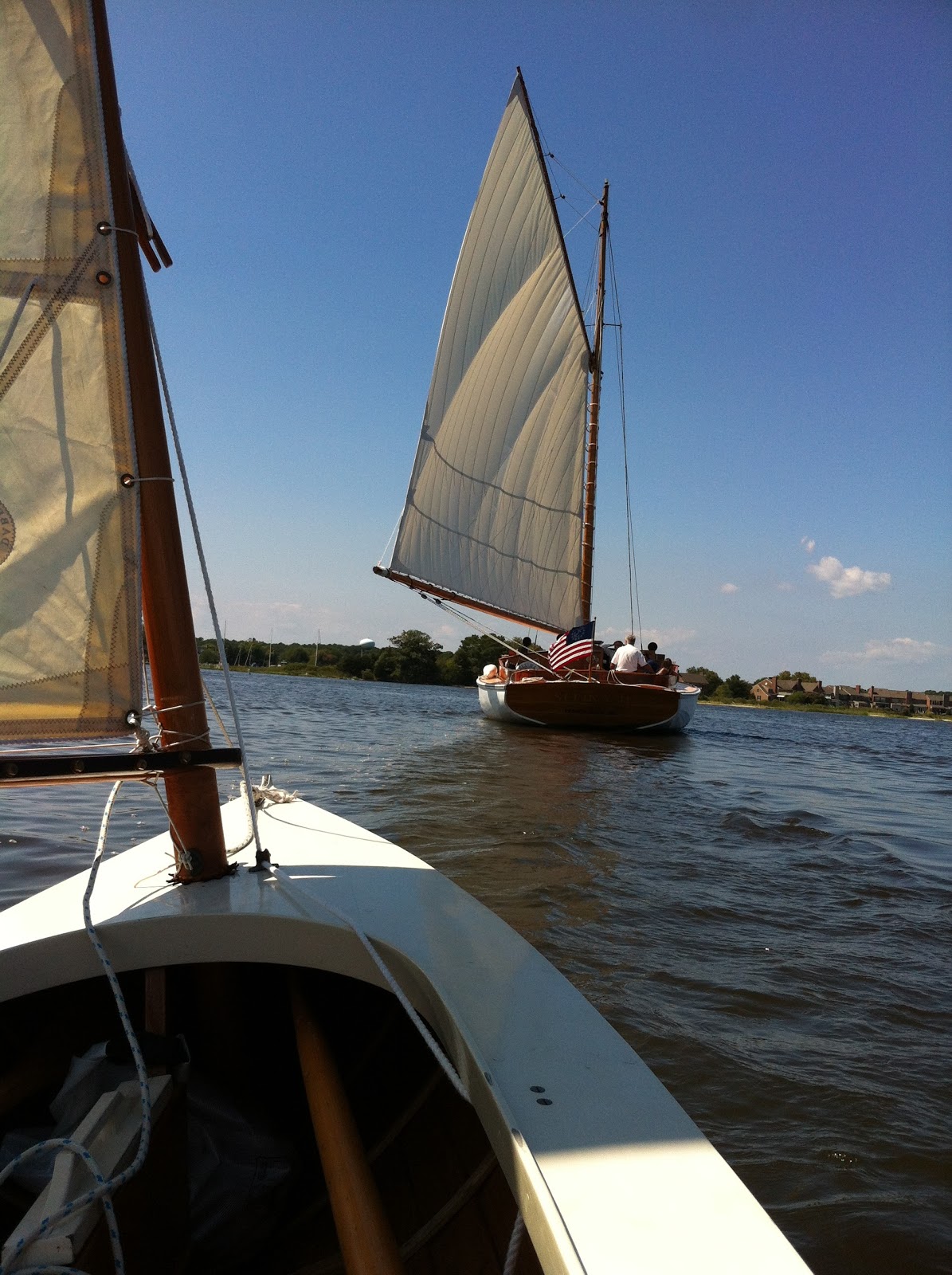As the summer winds down, the days have been quite pleasant here in Virginia of late. So why go to Maryland? Because there in St. Michaels you can find a Delaware Ducker. A fairly rare bird, there are actually several at the Chesapeake Bay Maritime Museum. One you may even rent by the hour for $30. On Fridays you may get and extra hour for the same ticket. So, we went for a 2 hour cruise.