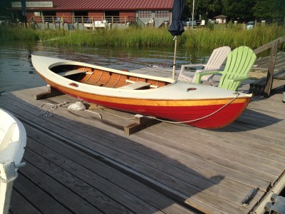 Last October I sailed a boat that I’ve admired for some time, the Delaware Ducker. As a child, my family cruised from Norfolk, VA to St. Michaels, MD nearly every summer. I recall on one visit following my mother across the lawn of the Chesapeake Bay Maritime Museum. It was a grey day and the swollen Miles River edged up into the outbuilding displays. At 11 or 12 years of age, the smaller boats exhibited fascinated me. You could dream of maybe owning one. A drab green punt version of the Ducker must have caught my attention. I’d almost swear to it. This smart skiff exudes adventure easily enticing a little boy’s wanderlust. Likely developed from canoe traditions, this light clinker built skiff is perfectly symmetrical fore and aft. The bow is identical to the stern. Long ago very common to the shores south of Philadelphia, hunters employed the craft to chase rail birds in the marsh. An understated beauty from the 1800’s , it quickly stuck in my mind when we were reacquainted on a solo cruise maybe 3 years ago. To sail one would be fantastic. The boat looked “right”. The chance did present and I was enthralled with the boat’s lively performance while sailing and rowing. It seemed like a Laser in disguise. Soon after I purchased plans of the two versions documented best. As a “vernacular” skiff, there are undoubtedly many other variations, but the now known “Greenbriar” and “York” are well documented. Save for 2-3 originals in museums on the East Coast, the hundreds of others have likely dissolved. We can be grateful a few people sought to preserve these simple lines and now those who wish can build a replica, can. No one has promoted the Ducker more than Ben Fuller at the Penobscot Marine Museum. He wrote several articles on the vessel for WoodenBoat while curator at the Mystic Seaport Museum. Ben in fact owns a Greenbriar in his gaggle of small boats. I’ve read and reread his articles, stared at my photos of the Greenbriar at the in St. Michaels, MD, and lofted both designs in the computer. Frankly, I’ve been haunted by the boat for some time. Sailing one may have put me over the edge. Shoot, that may be as good a reason to build one as any.