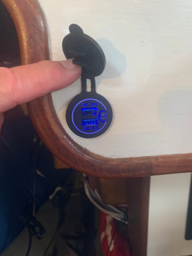 Also, I put another USB plug where a hole once was inside the companionway. Perhaps a vulnerable location, but like I said “hole”.