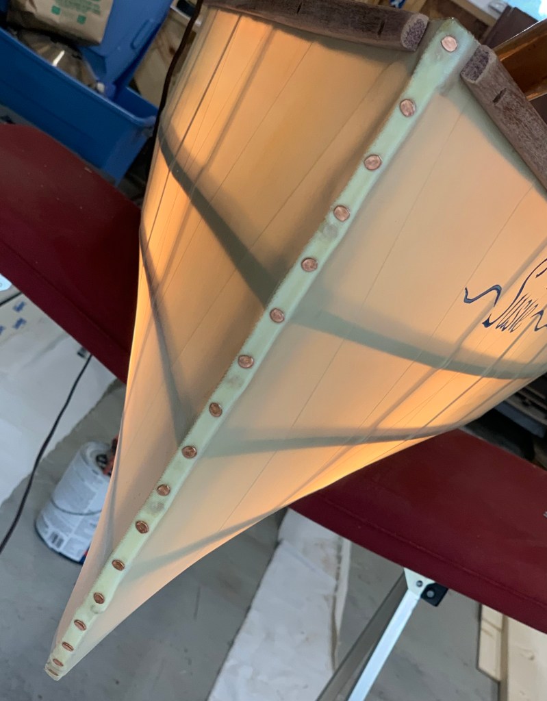 - took measurements along gunnel to chine to confirm designed dimensions. All is OK.