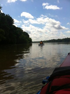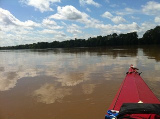 The water was muddied and current quick. The surface was smooth and the boat moved with little effort.
