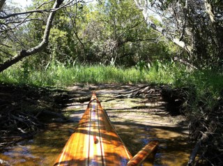 Another 150 yards on we found our bird again. This time he was more poised to fly and took off just as we drew in. Crossing the water, the pursued headed up the mouth of an overgrown creek entrance.