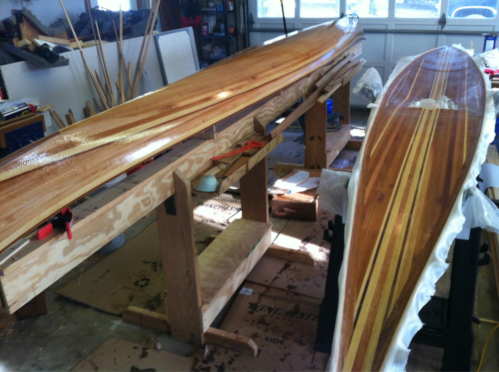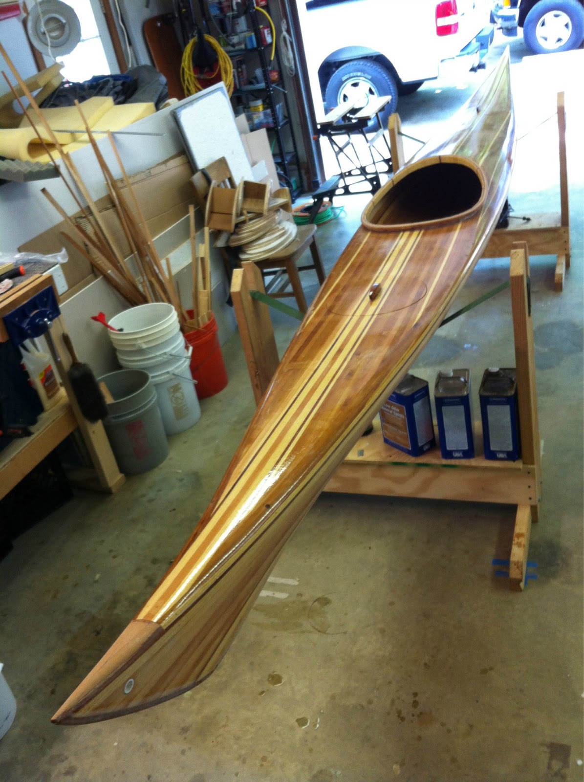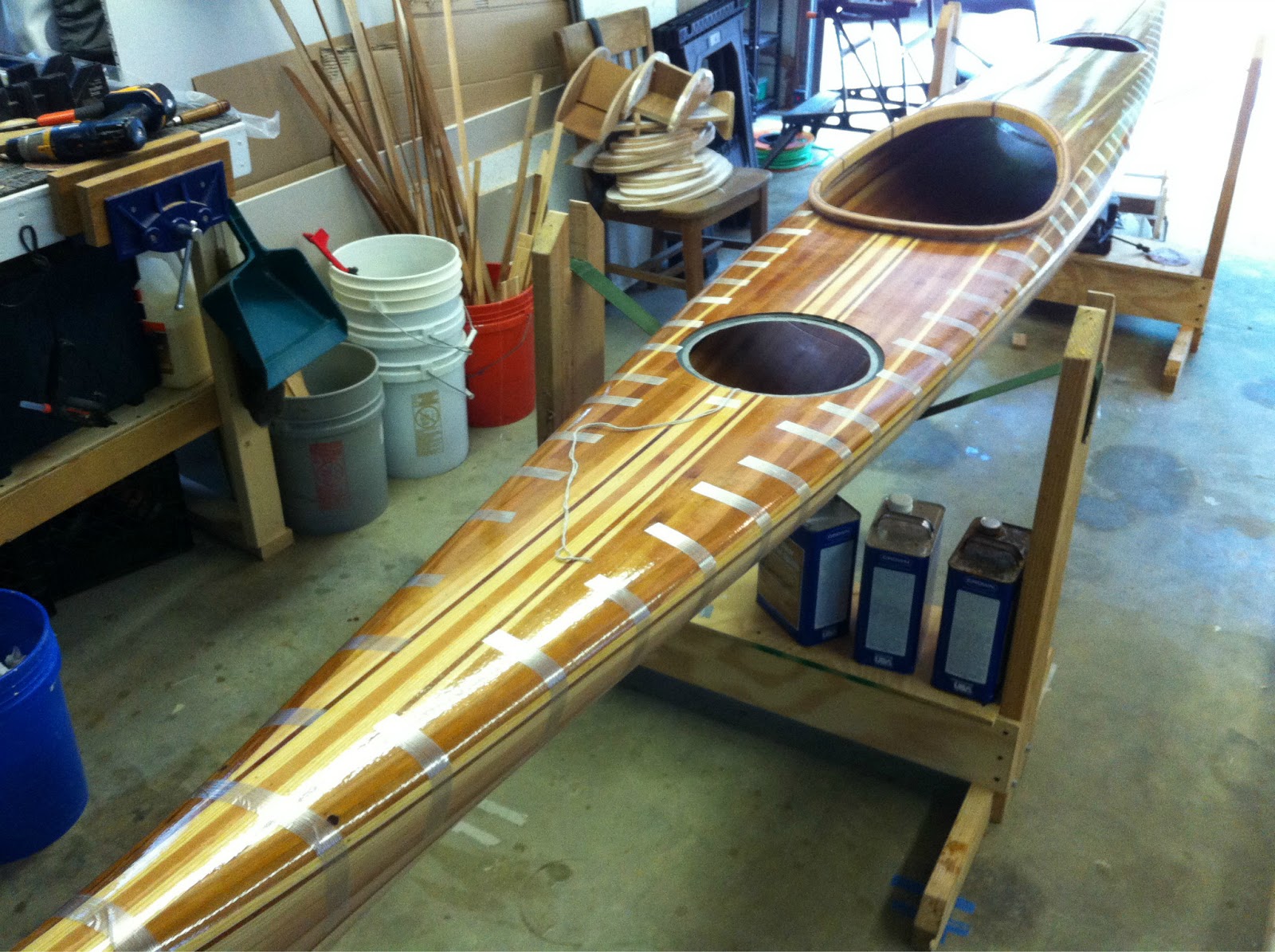 This weekend may offer time to make some kayak progress. I’ve scrubbed down the garage in preparation for varnishing. All sanding from here on out will be done outdoors. More sooner than later-