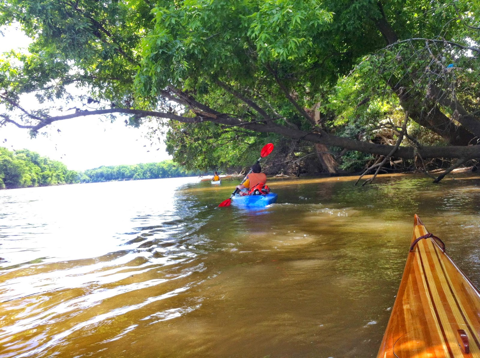 The water was muddied and current quick. The surface was smooth and the boat moved with little effort.