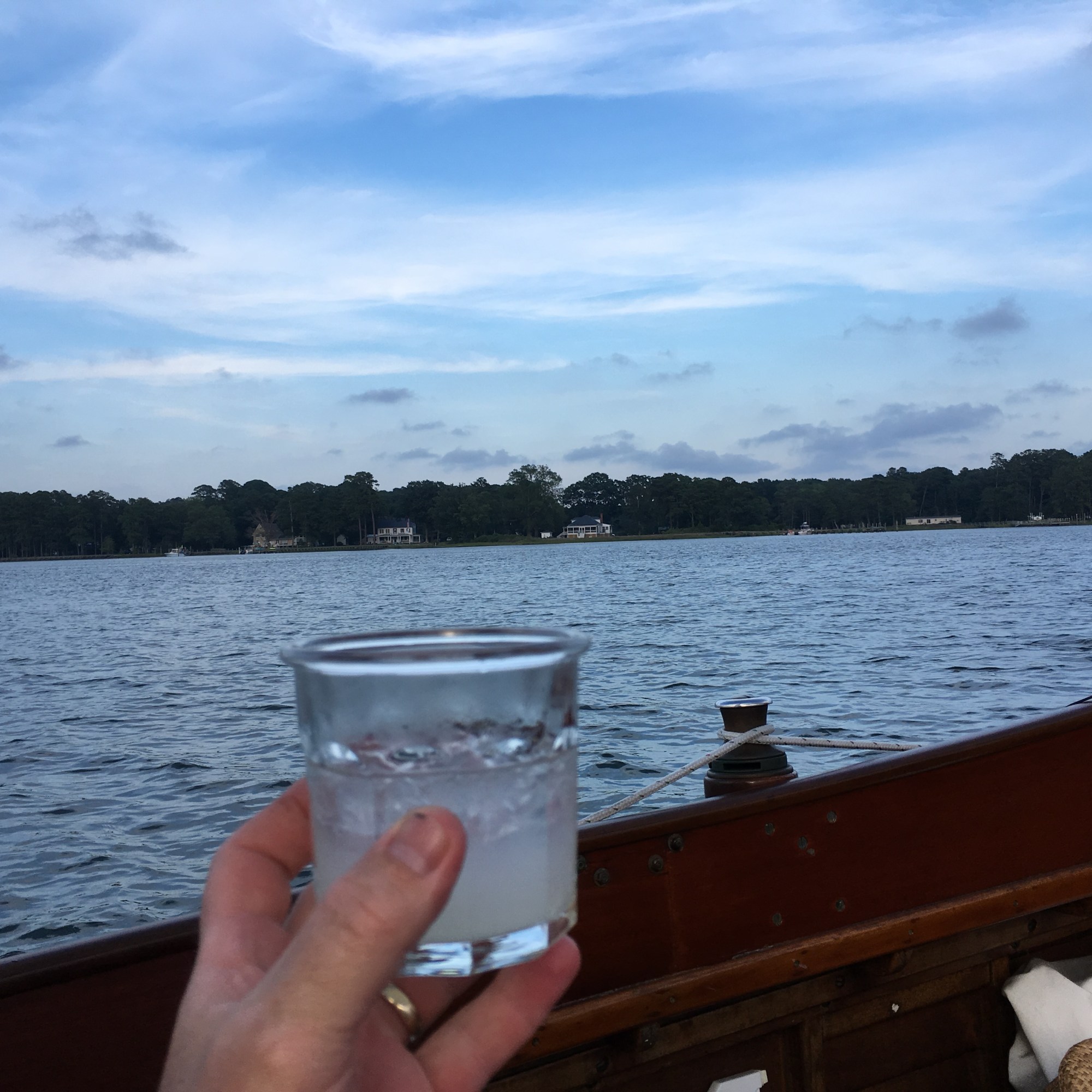 Dusk brought random cracks and fireworks popping along both shores. At 21:00 the “big show” at the local high school set off for nearly 20 minutes. Those were glimpsed under the mizzen boom and off the starboard bow Yorktown’s display rumbled and peered above the distant tree line. Toward the end a motorboat idled maybe 50 yards off filled with maybe 10 people. One of the crew cackled incessantly for several minutes until there was a splash. Apparently she was pushed. The mother of this swimmer then shut down the cruise by unleashing a tirade into the “captain” that would make any sailor blush. Thought I knew all those words. I do now. After that all was quiet as they slowly motored off. We were alone again, in the dark. A good sleeping breeze drifted below and by 23:00 we were sacked out and did not move until 05:30.