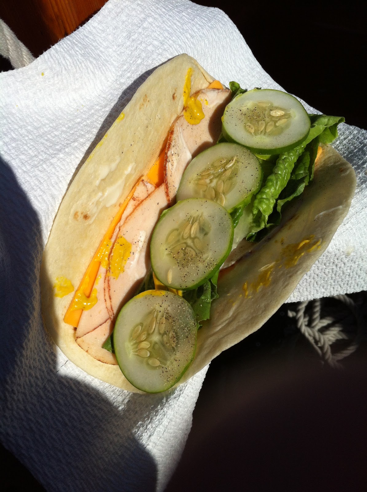 Lunch was a good ale and turkey wraps prepped by “Matey”.