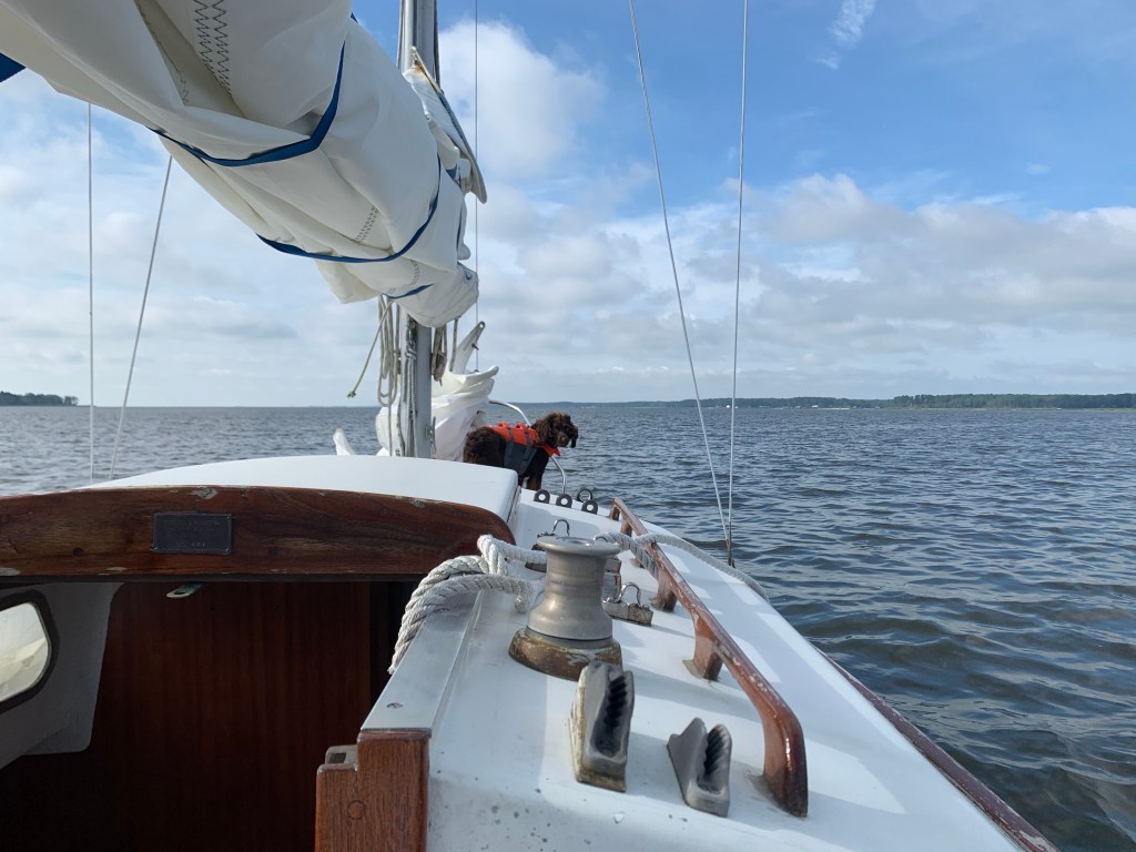 Sadly, this is the first sailing I’ve done this year. Let busy get in the way. Had a wonderful late afternoon sail upriver and back with my daughter, my puppy and a really good friend. Oh, and a beer. What else can you ask for?