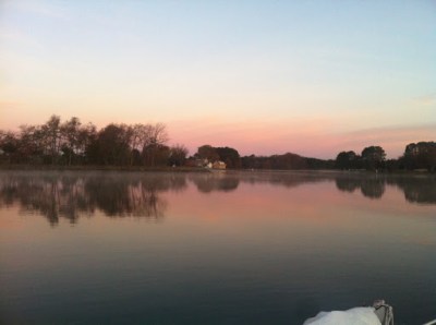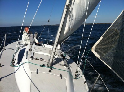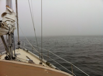Sailing at the beginning or end of the season is usually unpredictable. By that I mean you frequently get a mixed bag of conditions. Last week, we did. From warm, breezy, and sunny to cold, calm, and foggy. With 3 of the children in tow, we set out for some cruising on “Emily”. Despite a late morning start, we set out to windward from Mobjack and turned northerly from New Point Comfort on a broad reach in near ideal conditions. The sun was out. Winds were SE at 10-12 mph and the current favored a gentle trip all the way to Tangier sound on the Eastern Shore. Gannets and scoters gave evidence that the warm season had not arrived truly. I’d offer pictures of these interesting birds, but they would not allow us to get closer than 3-40 yards before taking flight. The muscular gannets were quick to be airborne while the scoters would skate away to settle down another 100 yards distant.