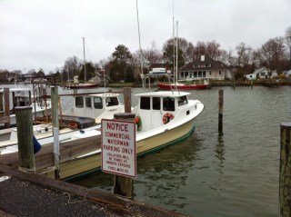 About a month ago I got an invitation to go sailing. I said, “Yes”. Had I known the conditions would be cold, wet and blowing, I may have reconsidered. I’m glad I had only suspicions as the time. Romping along the Eastern Shore’s Choptank was a blast. We sailed on my buddy Kevin’s Catalina Capri 22 “Big T”, a nice design and good sail-er. We met up meet up with Phil, Doug and his Cornish Shrimper “Tidings”. The sheltered harbor had pleasure and work boats that caught our eye. The mix provides the town with a nice feel.