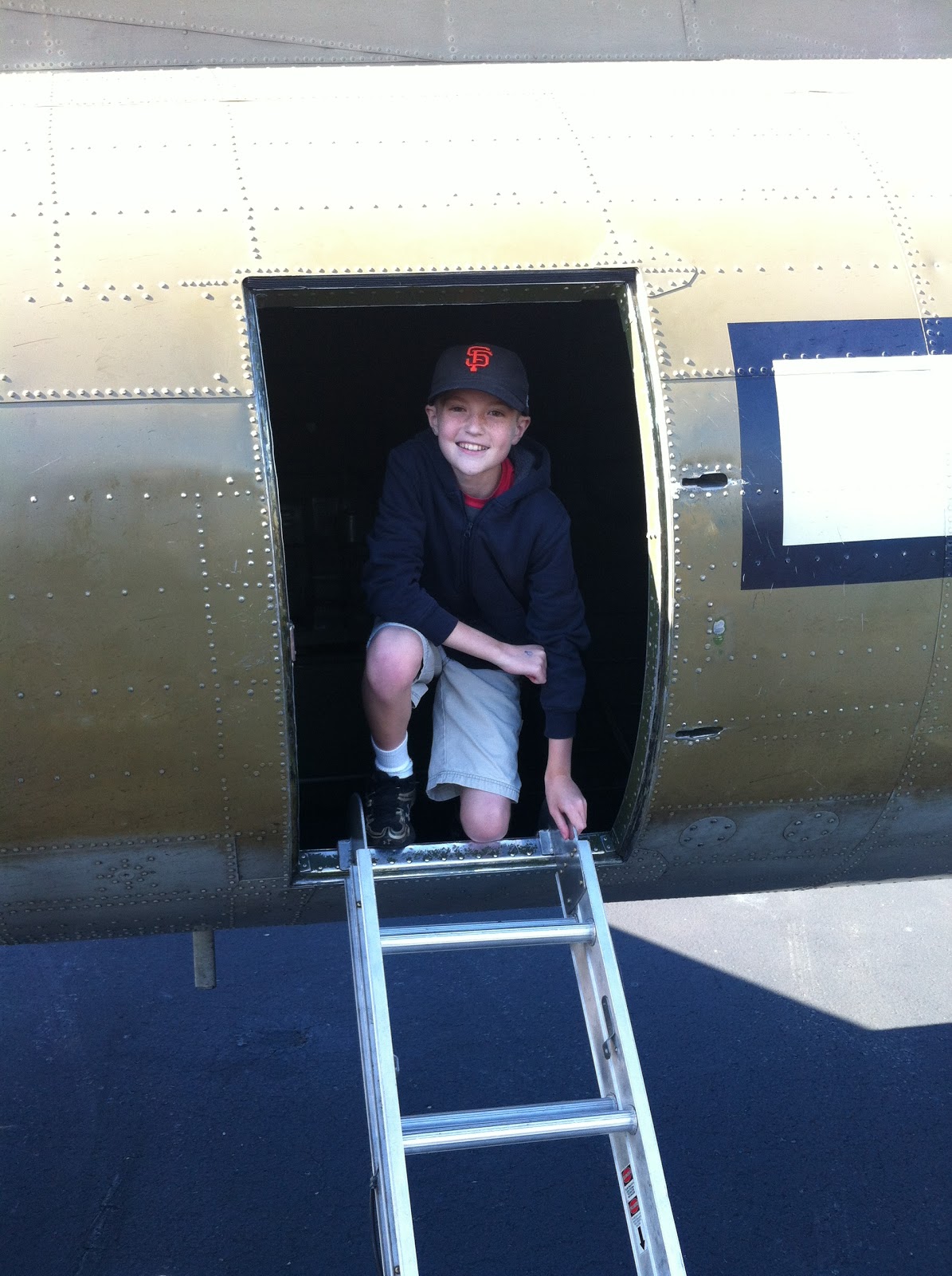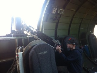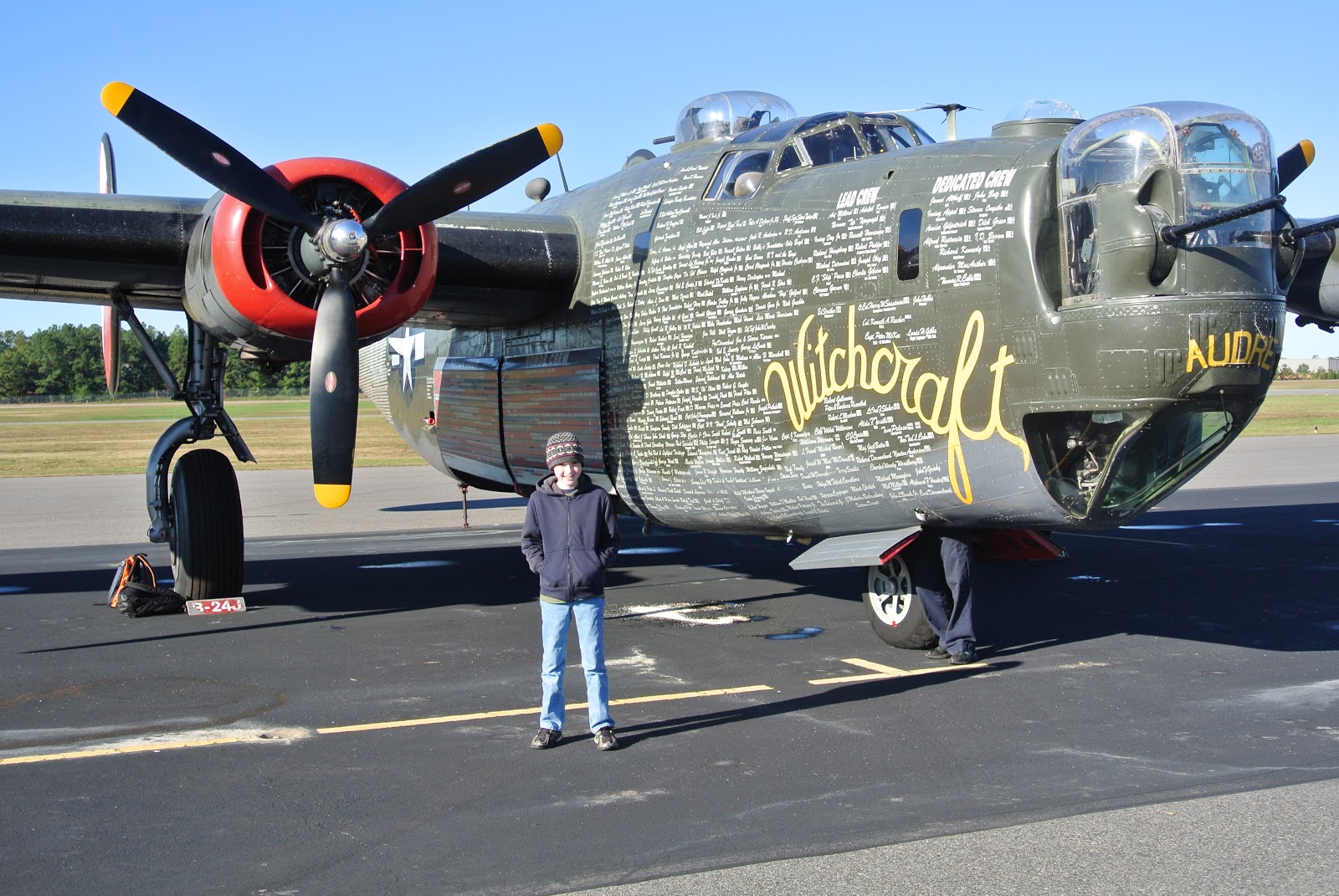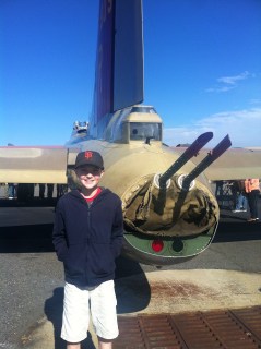 Regretfully, the B-24 was absent after a necessary landing in Stafford to attend to an engine problem. However, we found out that the aircraft were to depart that Monday morning, so we grabbed a thermos of hot chocolate and headed back to the airfield that morning. By luck a simple request got my son a tour of the late arriving B-24.