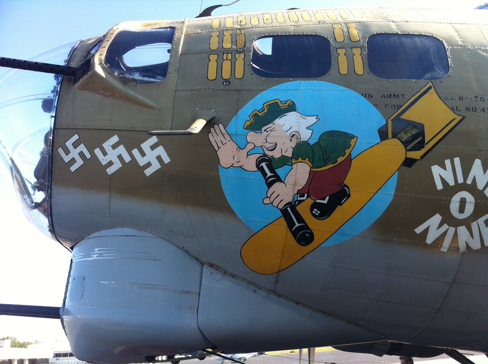 Two weeks ago a B-17 Flying Fortress, B-24 Liberator and a P-51 Mustang visited Chesterfield County airport for the weekend. My youngest boy and I went out that Friday to tour the planes. He has been playing the video game War Thunder and recently had achieved a level that allowed him to fly a B-17. The look on his face as he climbed in and out of the real thing was priceless. He also was a walking encyclopedia of B-17 specs. We took loads of photos. The Nine-O-Nine was built at the end of the war in Europe, 1945. She flew 140 missions and was credited with shooting down 3 German planes.