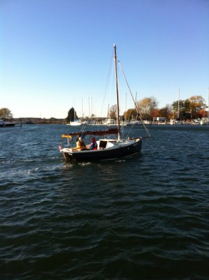 A fellow boater, Doug, sails both a Marsh Cat and a comparatively voluminous Cornish Shrimper (both excellent cruisers). The latter is quite luxurious and perhaps doesn’t qualify as a dinghy cruiser, but sometimes added comfort is most appreciated. I can recall a late Fall cruise last year, sitting below in his Shrimper, four friends, sharing stories, drinks and relishing the warmth produce by the chef’s stove. Thanks Doug!